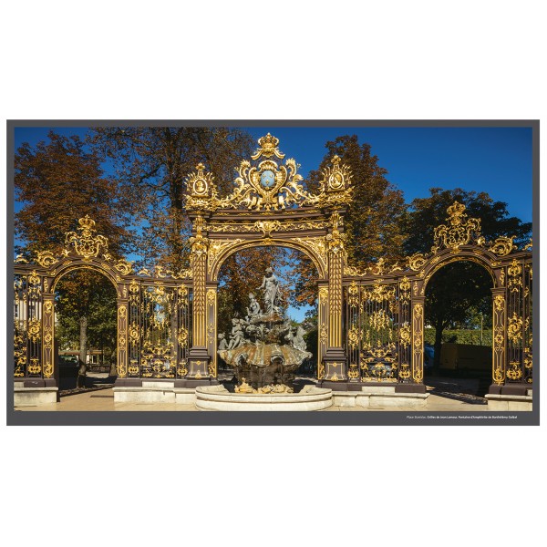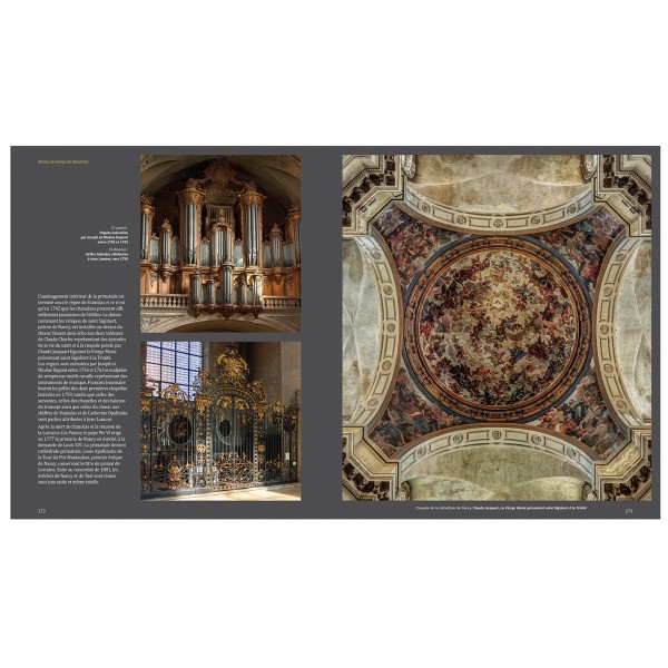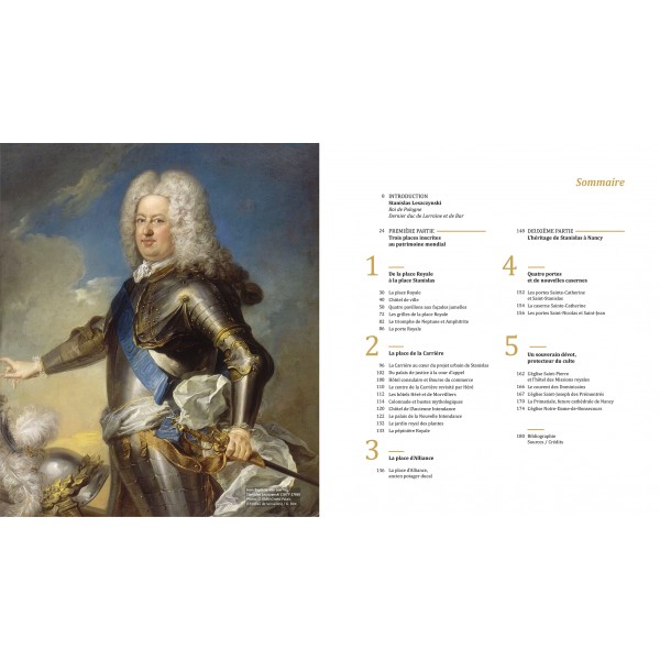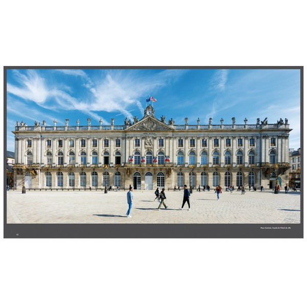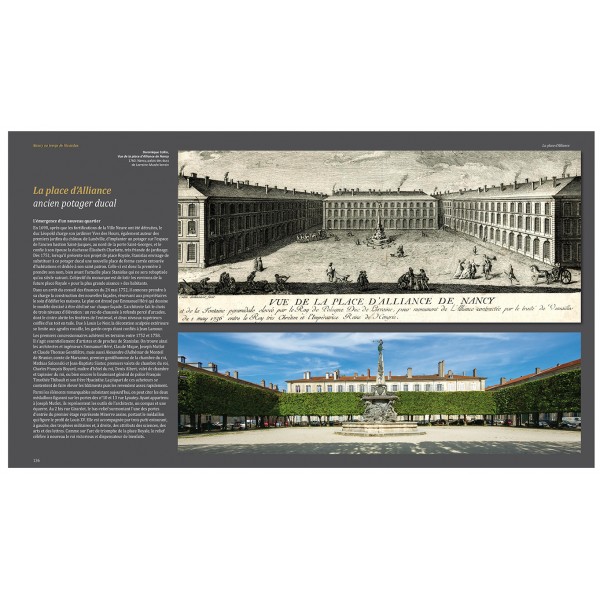 Le « Nancy XVIIIe au temps de Stanislas » y est magnifié par des vues exceptionnelles souvent reproduites en pleines et doubles pages. La place « Stan » dans toute sa splendeur, l’hôtel de ville, les pavillons, les fontaines de Neptune et Amphitrite, l’arc de triomphe, le palais du Gouvernement. Tous les chefs-d’œuvre d’Emmanuel Héré, de Jean Lamour, de Guibal en majesté. Outre les 3 places inscrites au patrimoine mondial, dans tous leurs aspects architecturaux et urbains, les arts décoratifs qui les